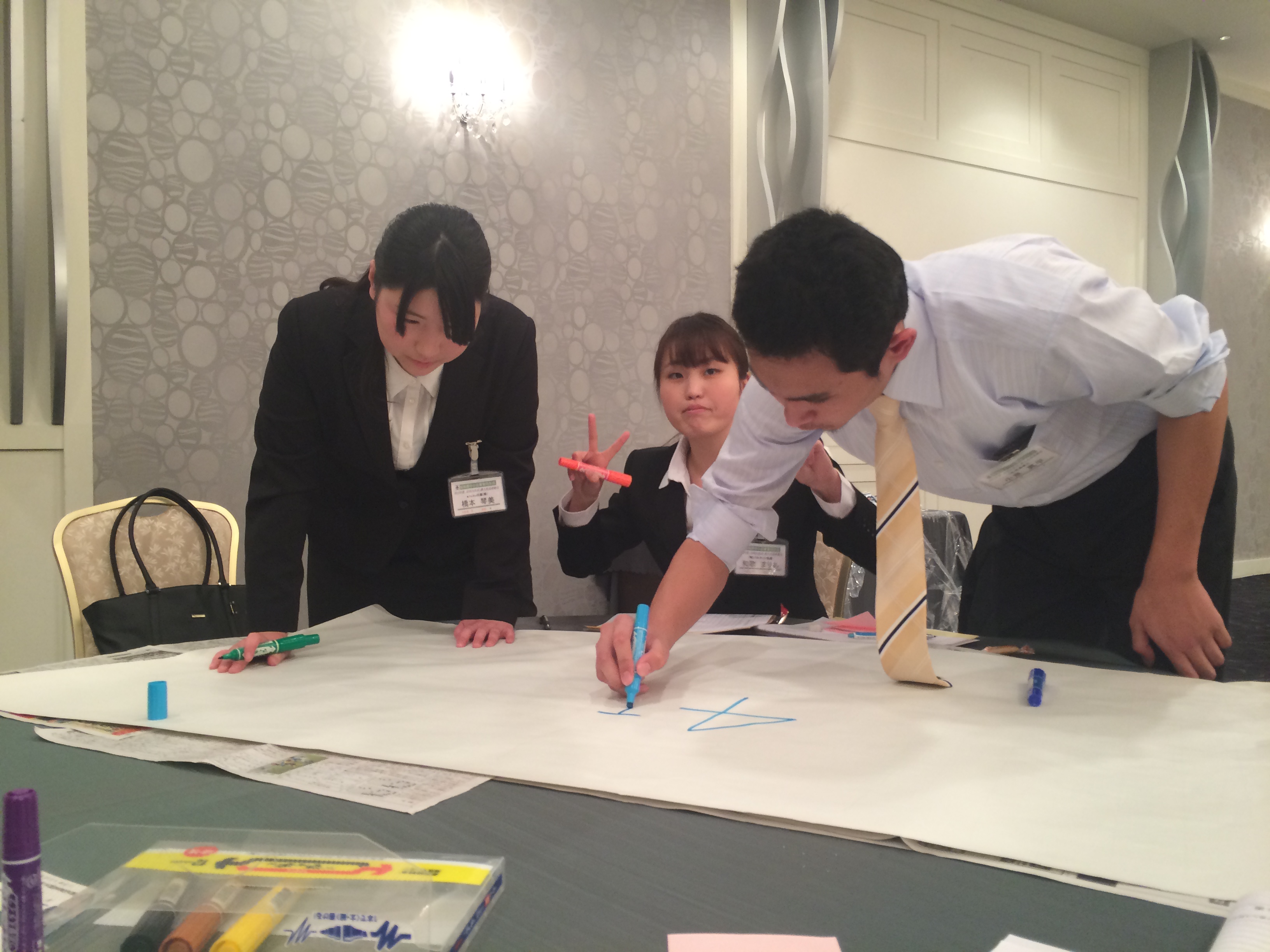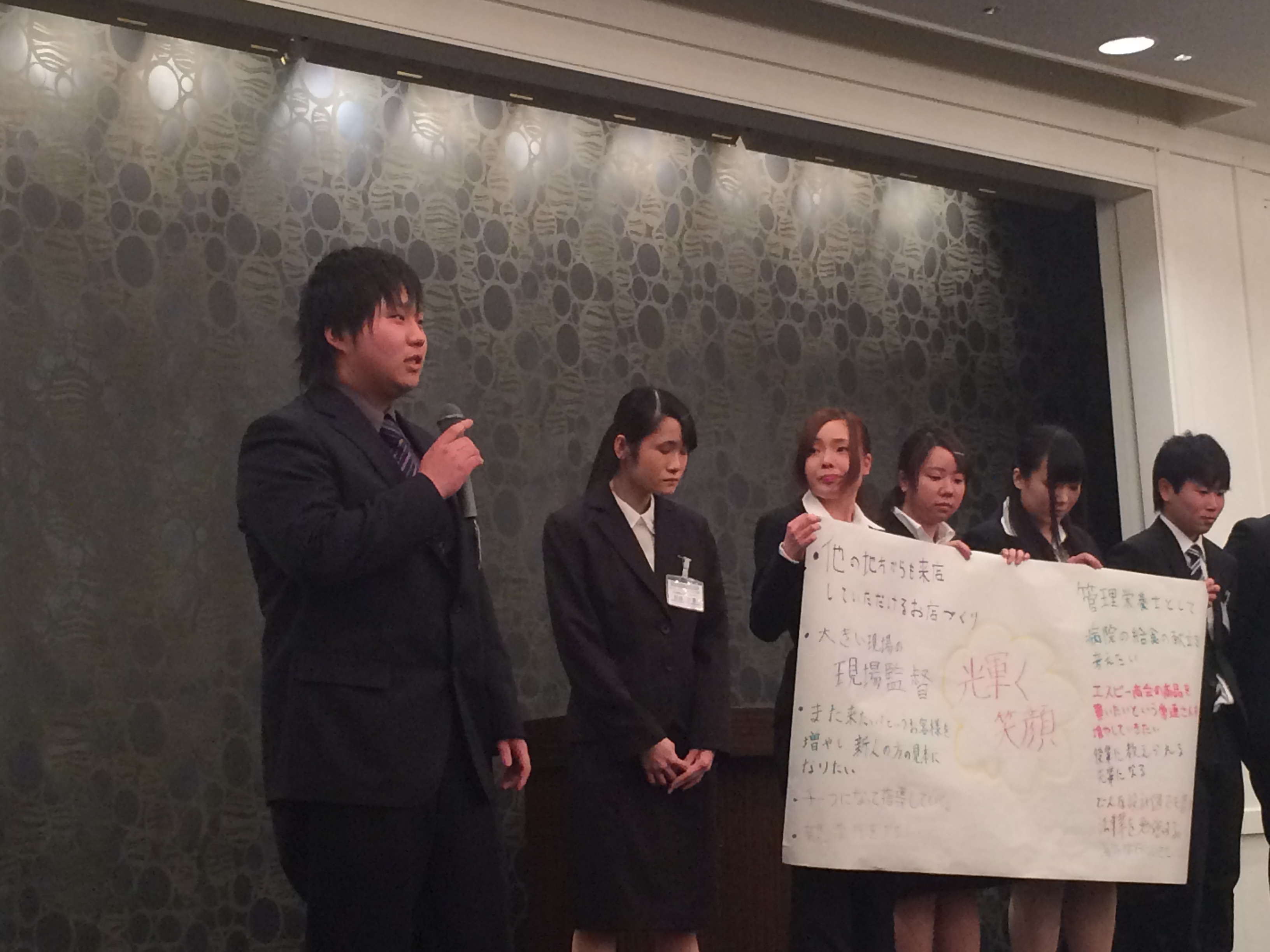 それぞれのグループに分かれ、夢と希望をふくらませたディスカッション。我が社の新人さんたちも、これから始まる生活の中でとても貴重な体験になったことと思います。